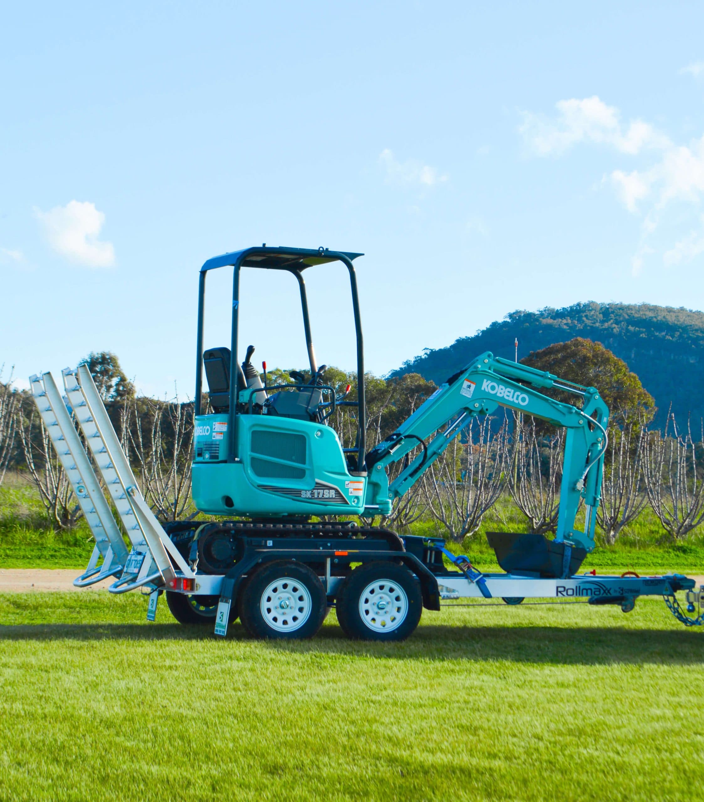 Due to impressively low tare weights Rollmaxx Aluminium Plant Trailers allow greater flexibility in the transportation of Mini Earthmoving Equipment.