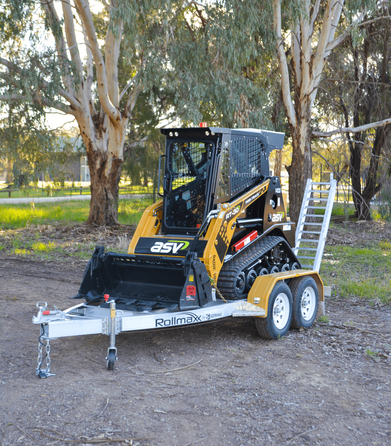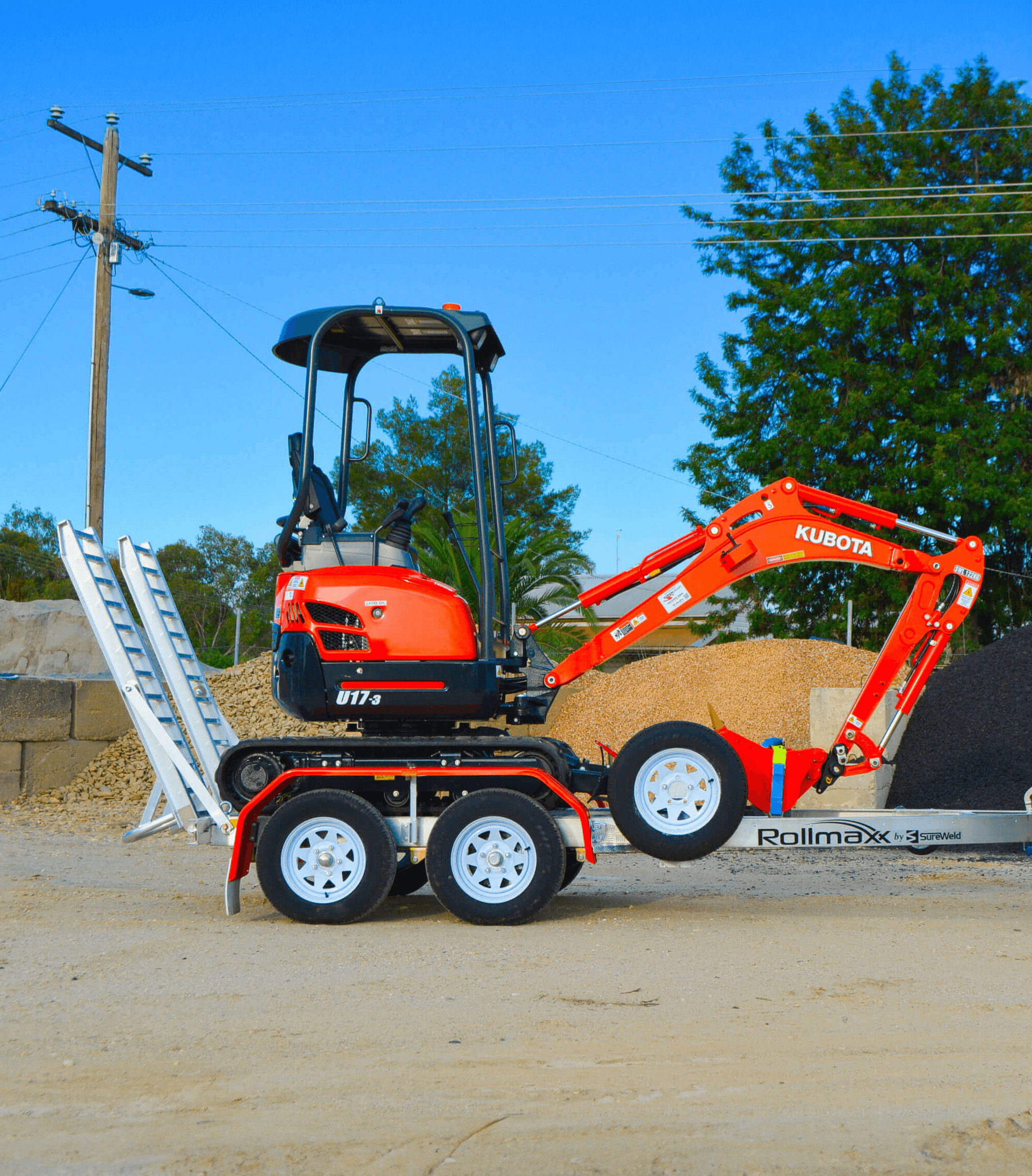 Due to impressively low tare weights Rollmaxx Aluminium Plant Trailers allow greater flexibility in the transportation of Mini Earthmoving Equipment.